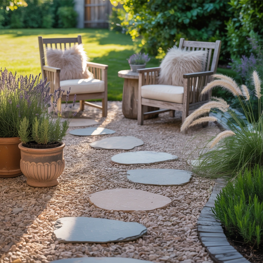 Idea 7: Pea Gravel Patio with Stepping Stones